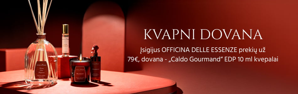 OFFICINA DELLE ESSENZE aromatai veda į pačią Italijos širdį, Romą, kurioje dar 1950m. Lembo šeimai priklausančioje kvepalų parduotuvėje prasidėjo Maurizio Lembo svajonė. 2001m. jis įkūrė OFFICINA DELLE ESSENZE prekinį ženklą, kuris, vedinas didelės aistros autentiškam itališkam stiliui ir kokybei, iki šios dienos išlieka meistriškumo ir prabangos simboliu. Kruopščiai atrinktos buteliukų dizaino detalės ir nuolatos tobulinama kvapų puokštės sudėtis įsilieja į namų erdves kaip interjerą papildanti ir pojūčius žadinanti detalė.